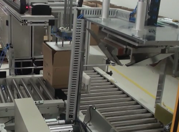 4.流水線組成:整條流水線由自動開箱機(jī)——自動貼標(biāo)機(jī)——自動裝隔板——物料自動抓取——產(chǎn)品自動裝箱——全自動折蓋封箱機(jī)——全自動四角邊封機(jī)組成,實(shí)現(xiàn)不同的子產(chǎn)品在同一條流水線完成裝箱。